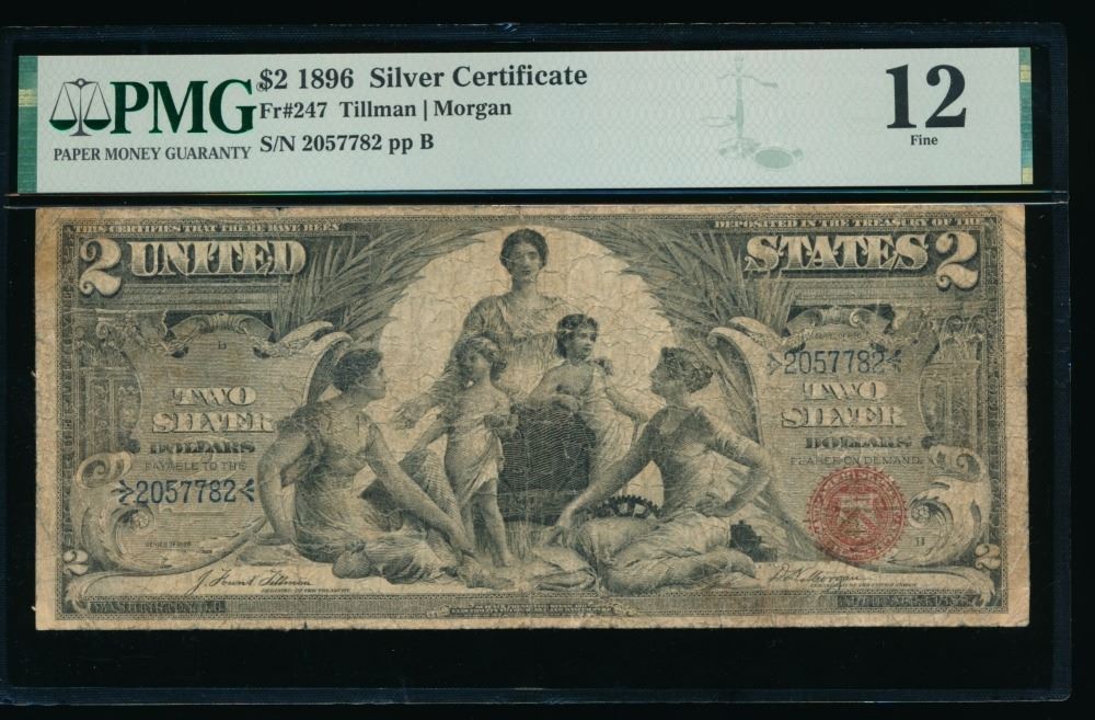 One 1896 $2 Educational Silver Certificate PMG 12.