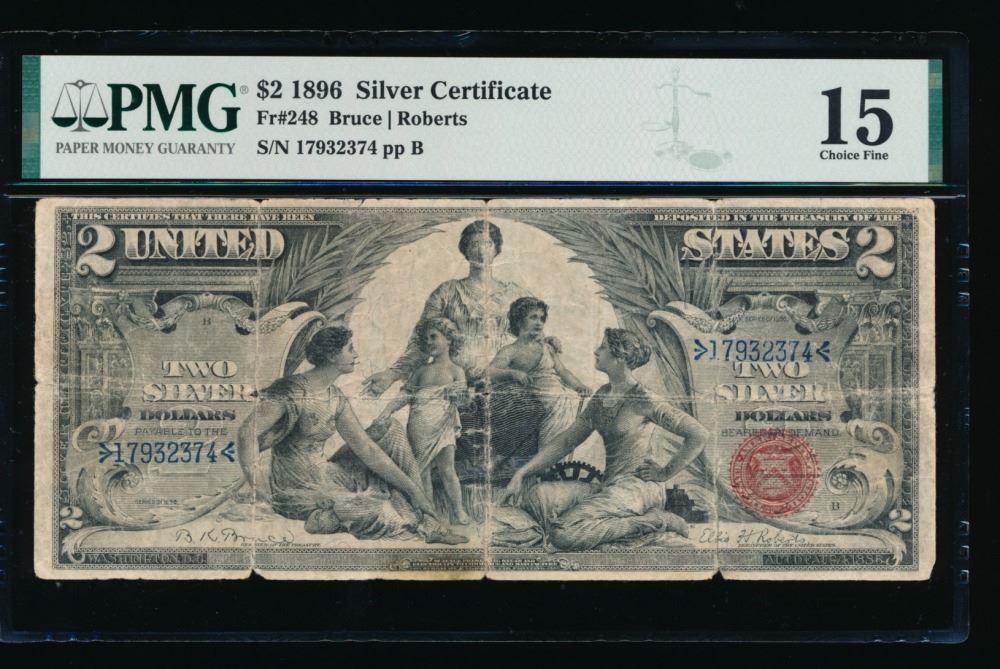 One 1896 $2 Educational Silver Certificate PMG 15.
