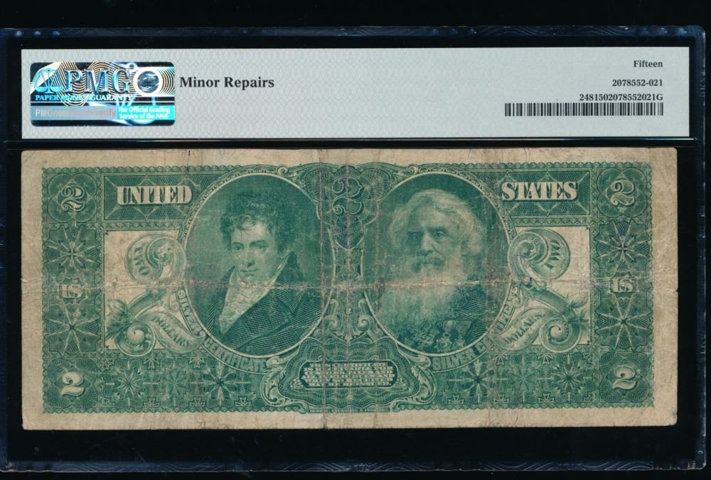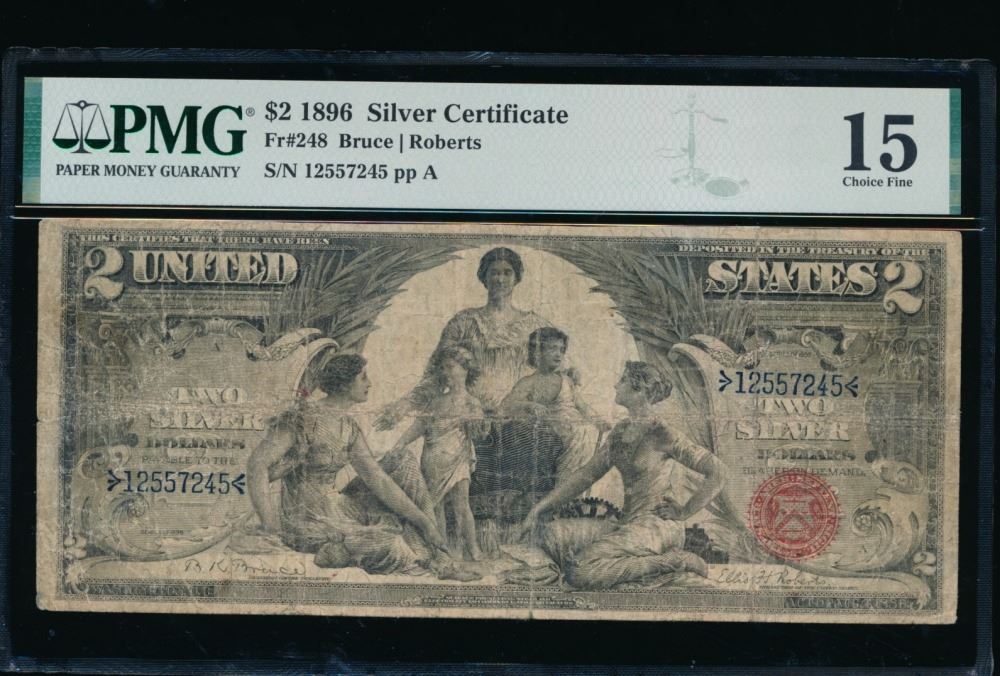 One 1896 $2 Educational Silver Certificate PMG 15.