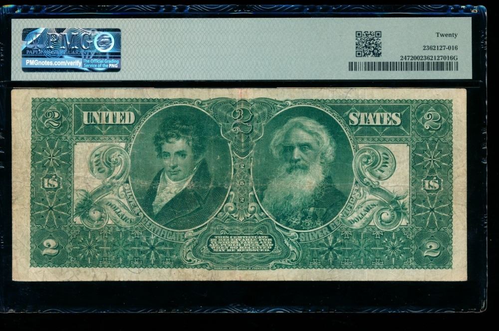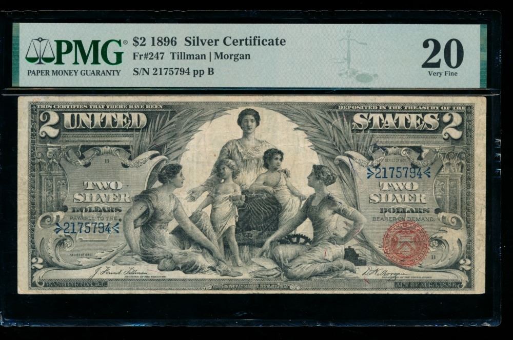 One 1896 $2 Educational Silver Certificate PMG 20.