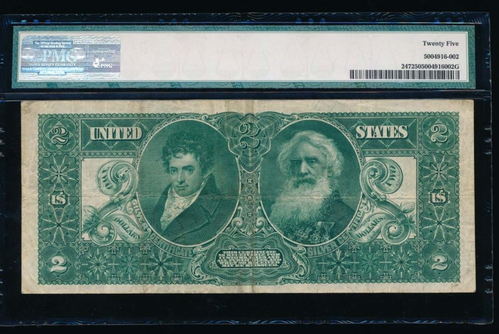 One 1896 $2 Educational Silver Certificate PMG 25.