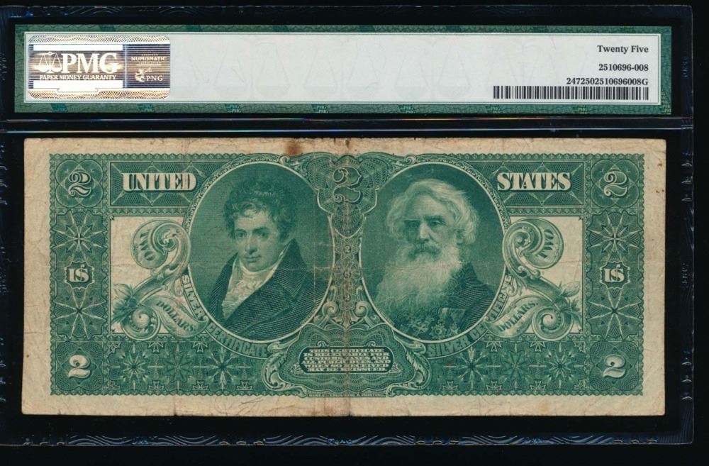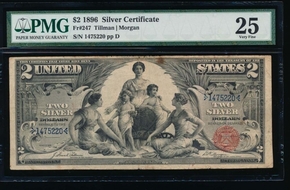 One 1896 $2 Educational Silver Certificate PMG 25.