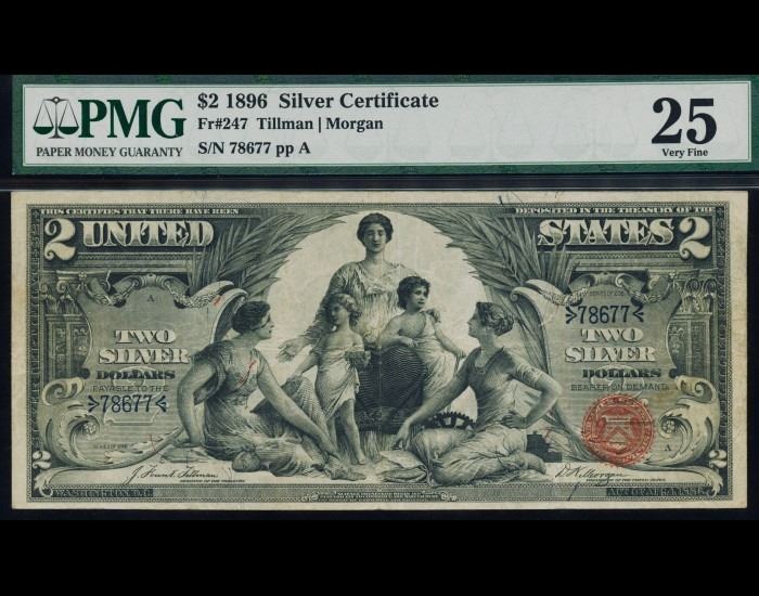 One 1896 $2 Educational Silver Certificate PMG 25.