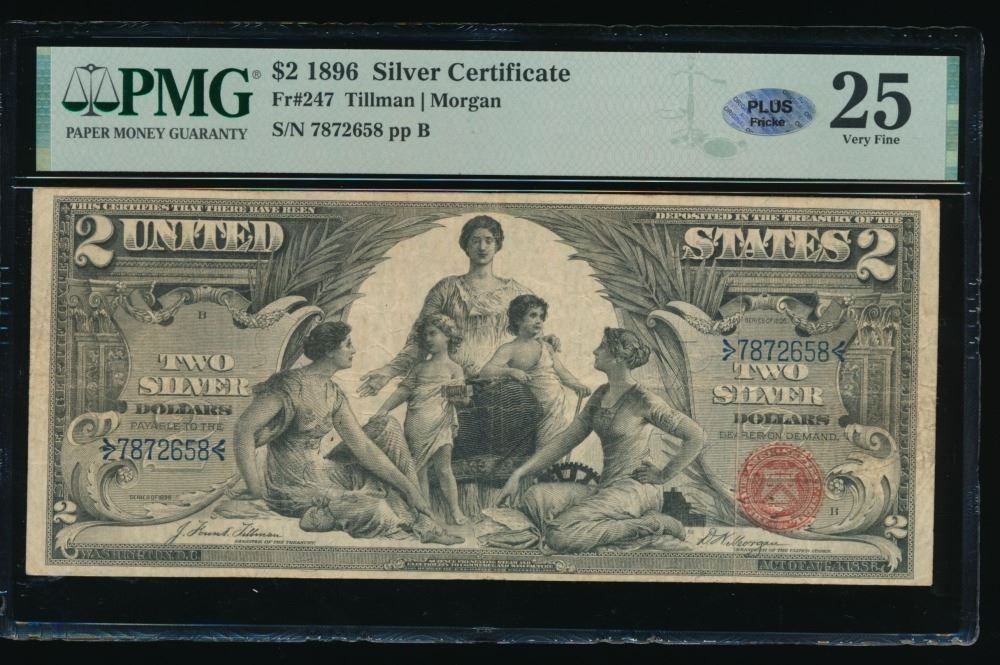 One 1896 $2 Educational Silver Certificate PMG 25.