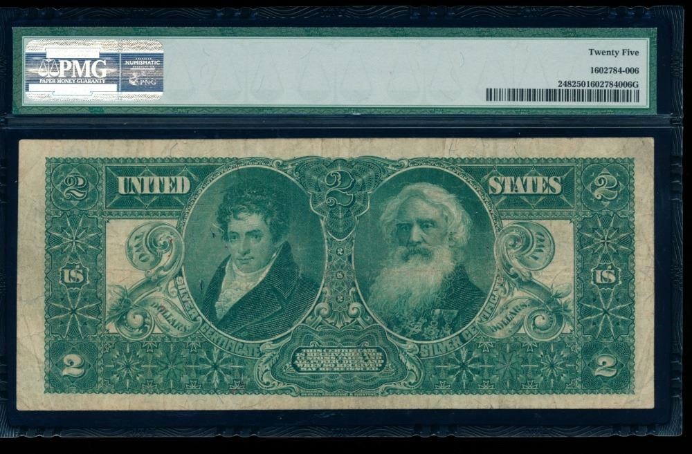 One 1896 $2 Educational Silver Certificate PMG 25.