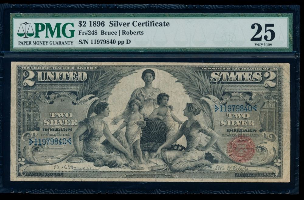 One 1896 $2 Educational Silver Certificate PMG 25.