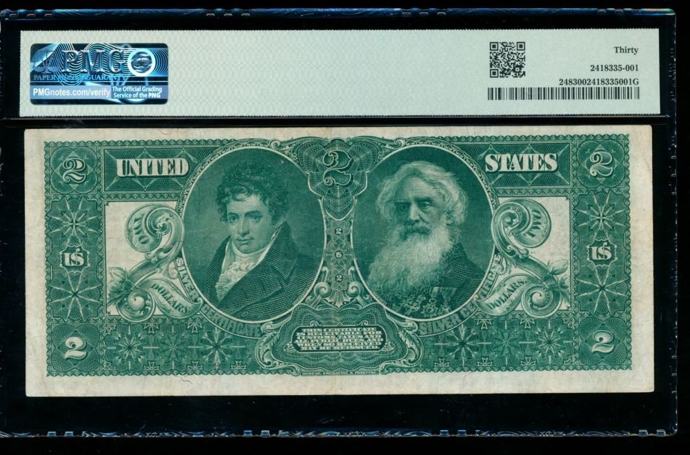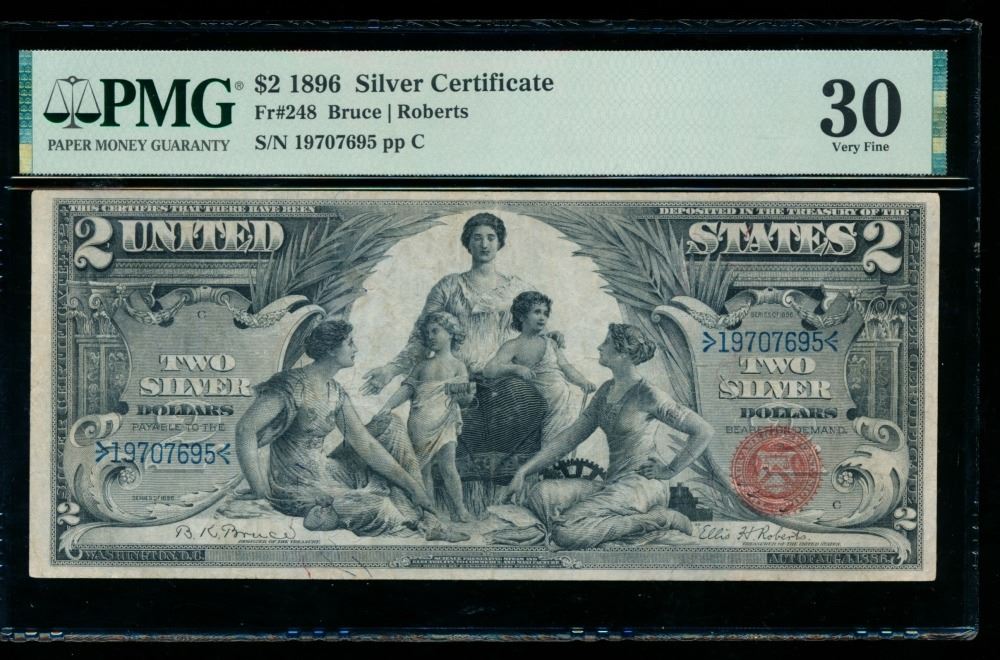 One 1896 $2 Educational Silver Certificate PMG 30.