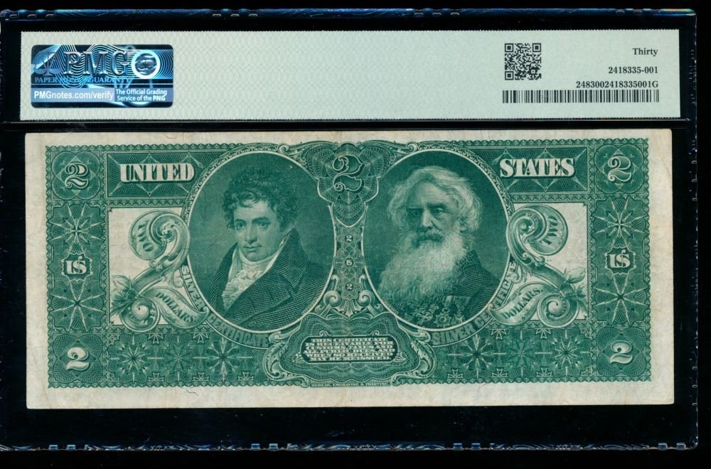 One 1896 $2 Educational Silver Certificate PMG 30.