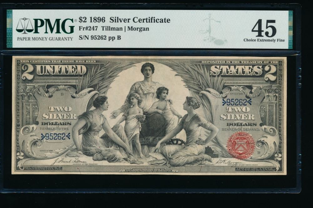 One 1896 $2 Educational Silver Certificate PMG 45.