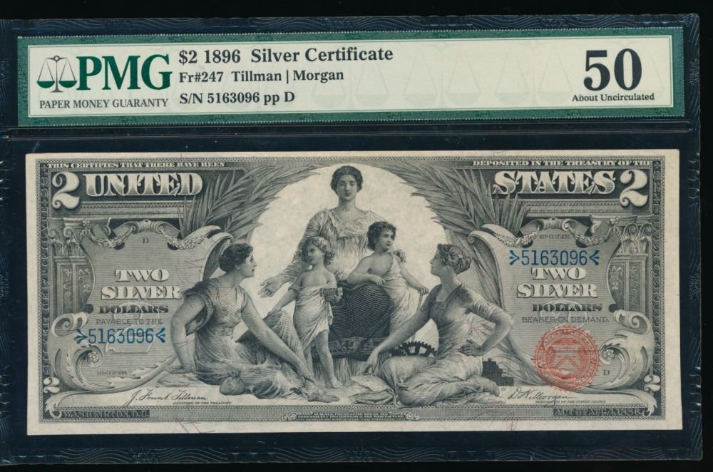 One 1896 $2 Educational Silver Certificate PMG 50.