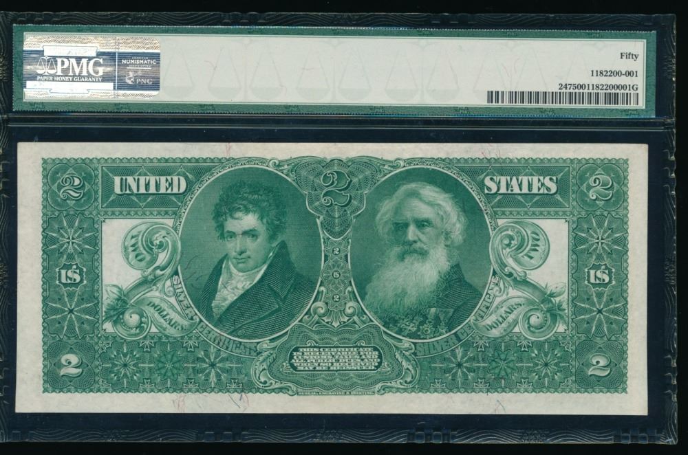 One 1896 $2 Educational Silver Certificate PMG 50.