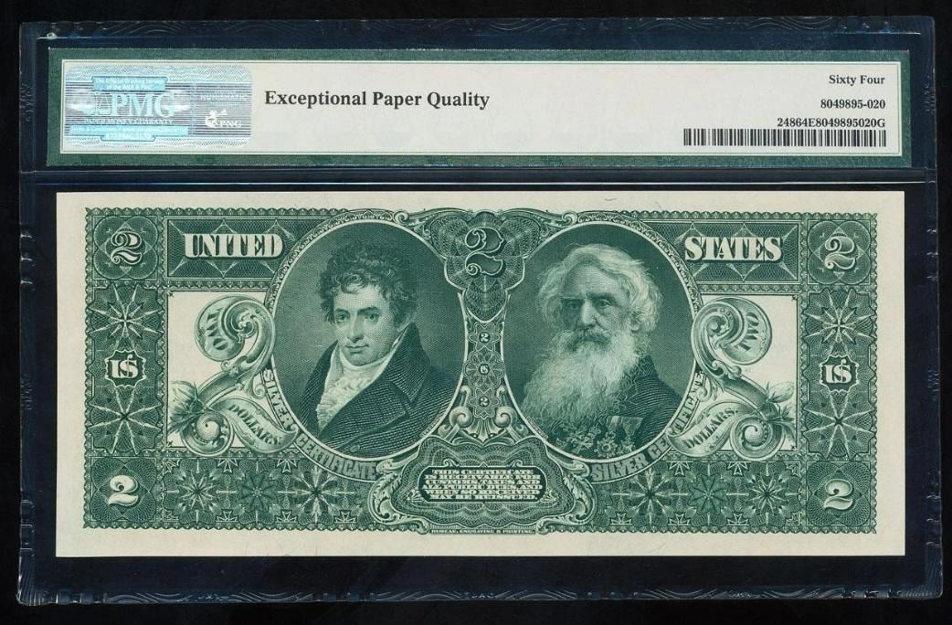One 1896 $2 Educational Silver Certificate PMG 64EPQ.