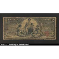 1896 $2 Silver Certificate, Fr-248, Good-VG. A low grade but fully intact example of this ever-popular Education design.