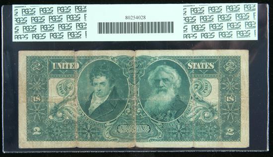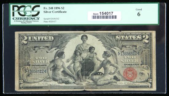 1896, $2 Silver Certificate. PCGS Good 6. . Fr-248. . KL-129. An immenently affordable example of a very popular and heavily collected type. It has survived the rigors of circulation without being damaged or mangled.