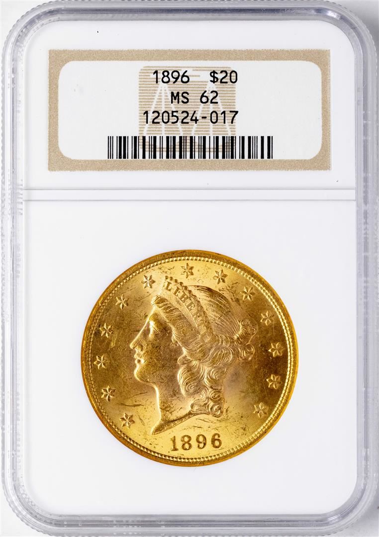 One 1896 $20 Liberty Head Double Eagle Gold Coin NGC MS62. NGC Certified.