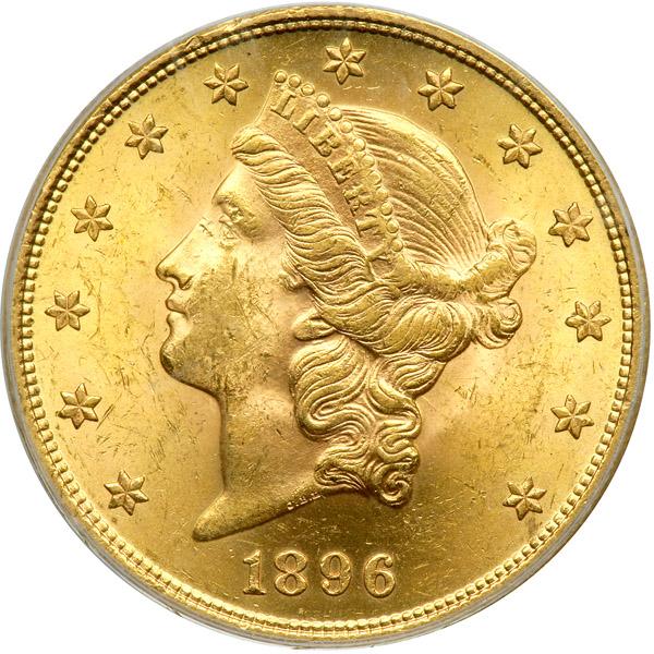 1896 $20 Liberty. PCGS graded MS-62. Very frosty. Would make an attractive addition to any collection of U.S. coins (PCGS # 9029) .