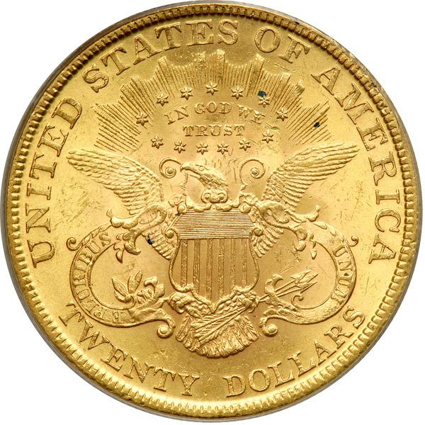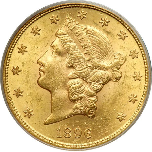 1896 $20 Liberty. PCGS graded MS-62. Well struck and untoned (PCGS # 9029) .