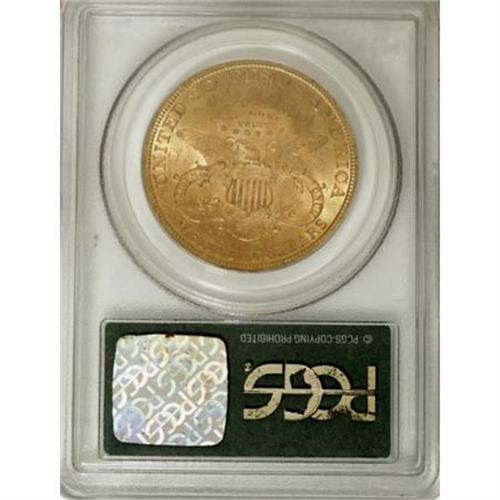 <B>1896 $20 MS61 PCGS.</B></I> The orange centers are framed by green-gold toning. Small marks are distributed, although none individually distract. Encapsulated in a green label holder.<BR><BR><B>Coin Engraver:</B> James B. Longacre<BR><BR><b>Shipping:</b> Coins & Currency (<a target="_blank" href="http://www.heritageauctions.com/common/shipping.php">view shipping information</a>)