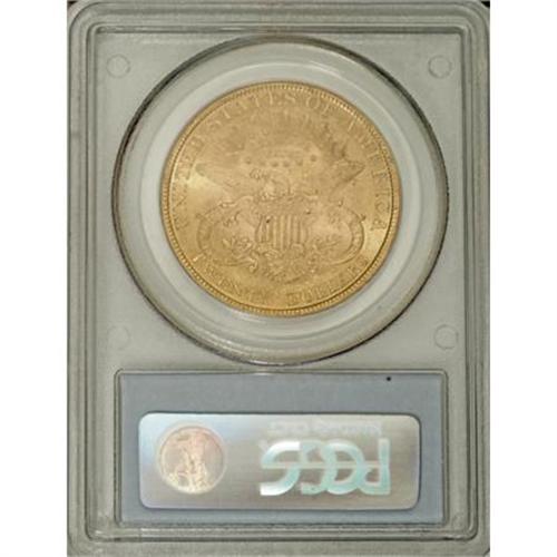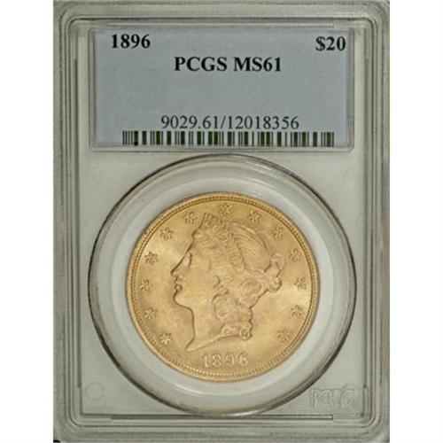 <B>1896 $20 MS61 PCGS.</B></I> Boldly impressed with vibrant luster and excellent visual appeal despite a number of abrasions. Light haze over the yellow-gold surfaces suggests a stint in international commerce.<BR><I>From The York/Hallenbeck #2 Current Finest PCGS Registry Set of Liberty Double Eagles.</B></I><BR><BR><B>Coin Engraver:</B> James B. Longacre<BR><BR><b>Shipping:</b> Coins & Currency (<a target="_blank" href="http://www.heritageauctions.com/common/shipping.php">view shipping information</a>)