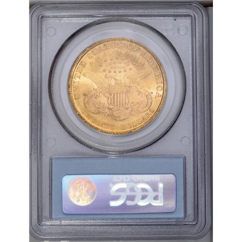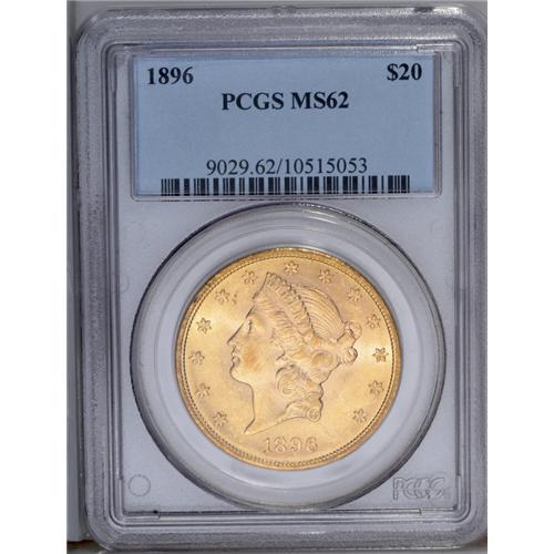 <B>1896<$20> MS62 PCGS.</B></I> Outstanding flashy luster dominates this double eagle. The scattered abrasions that preclude Select status appear over the fields and the well struck devices.