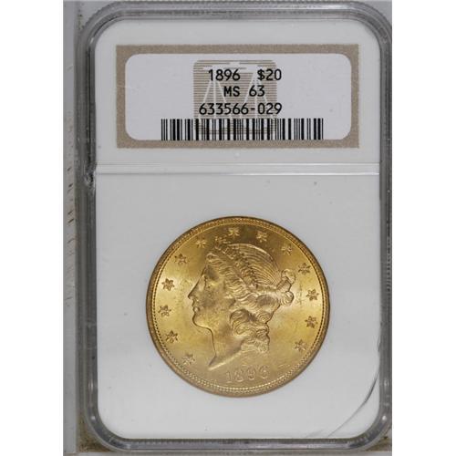 1896 $20 MS63 NGC. A nicely struck example with pleasi
