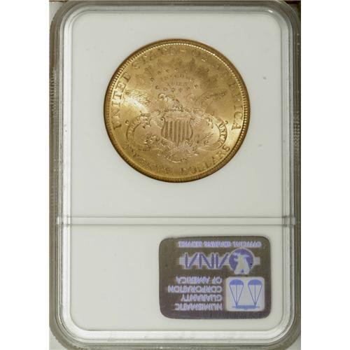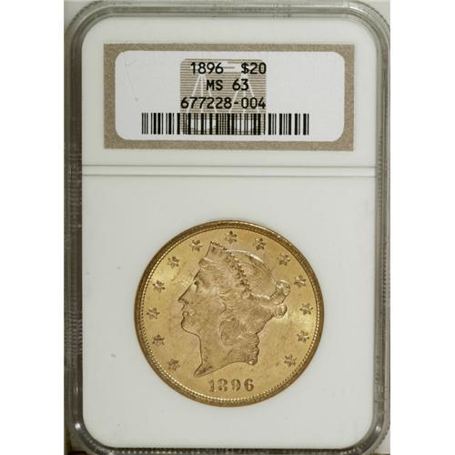 1896 $20 MS63 NGC. Razor-sharp with an intense, frosty
