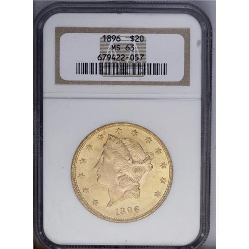 1896 $20 MS63 NGC. Sharply struck and highly lustrous,