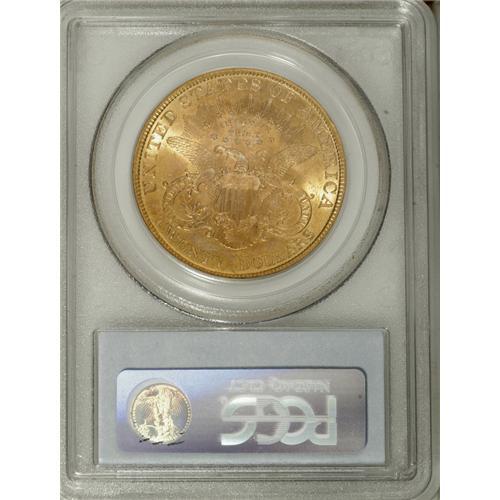 <B>1896 $20 MS63 PCGS.</B></I> The mintage of this date was quite high for the double eagles of the period, and survivors are seen with frequency, yet not many have been graded finer than this piece. It has rich honey-gold color and sharp details with brilliant luster.<BR><BR><b>Shipping:</b> Coins & Currency (<a target="_blank" href="http://www.heritageauctions.com/common/shipping.php">view shipping information</a>)