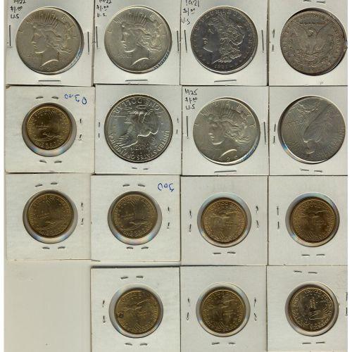1896-2001. Lot of 15 US Dollars. Includes 1896, 1921, 1922(2), 1925(2), , 1971, 2001 and 2007(7). Vf to BU