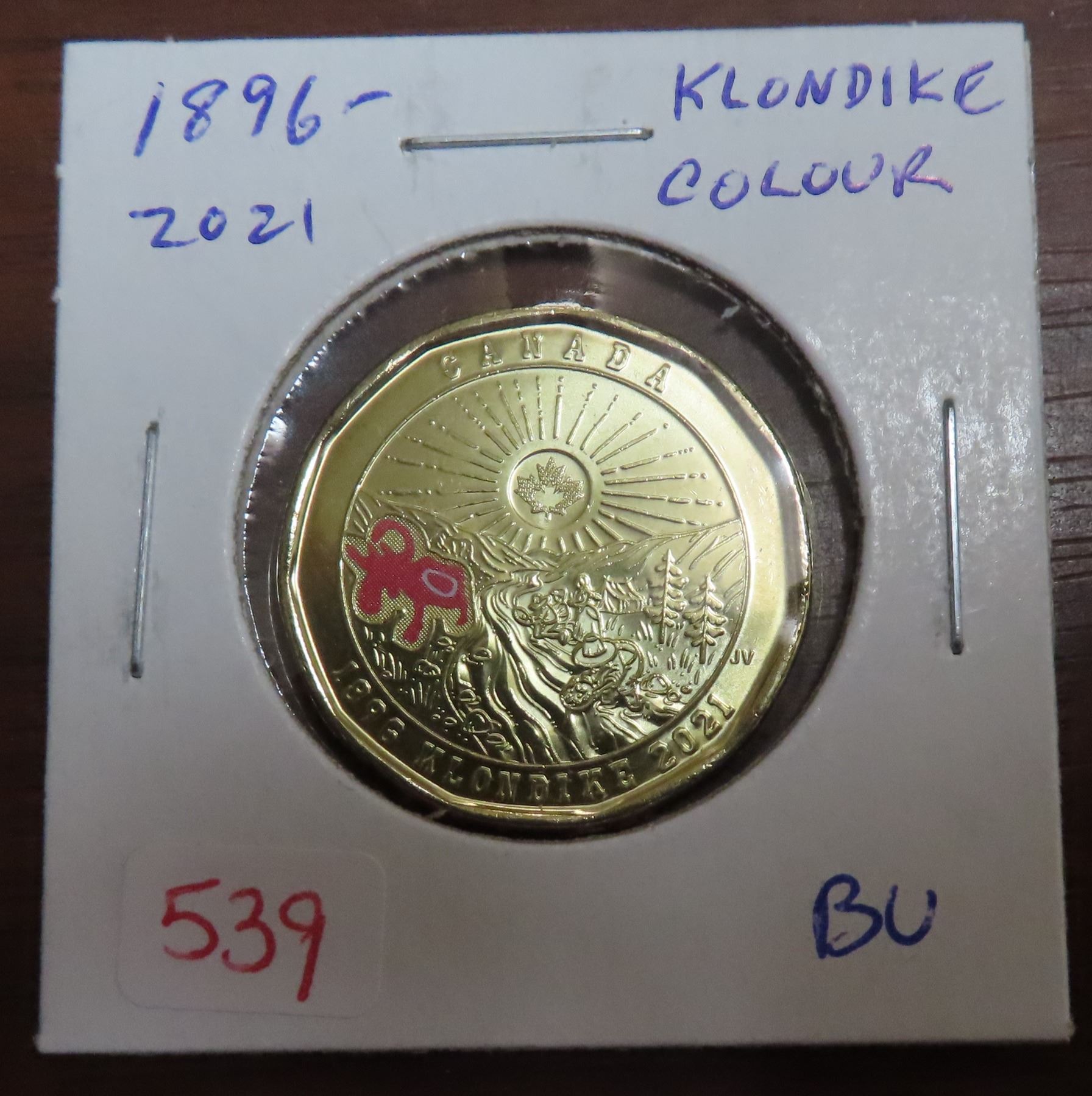 1896 – 2021 Klondike Loonie. Colourized. BU from an original Royal Canadian Mint roll.