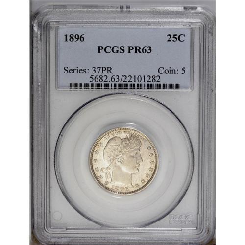 1896 25C PR63 PCGS. A thin veil of patina on each side 1896[25C] PR63 PCGS.