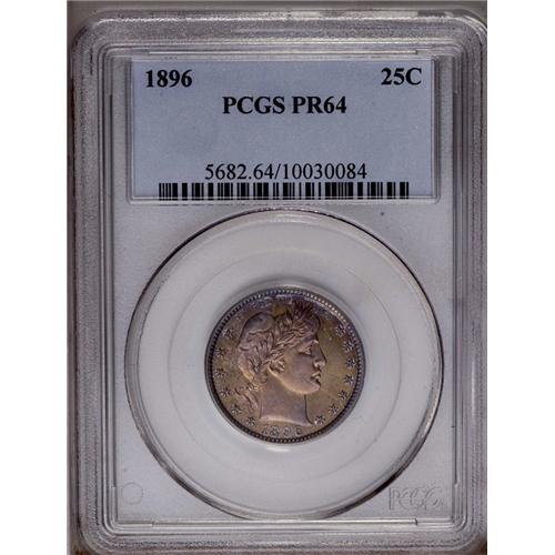 1896 25C PR64 PCGS. Dark brownish-green and rose tonin 1896[25C] PR64 PCGS.