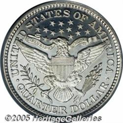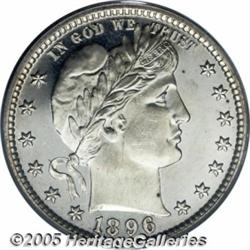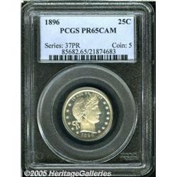 <B>1896 25C PR65 Cameo PCGS.</B></I> Brilliant save for a hint of tan patina on Liberty's neck and four distributed tiny obverse toning flecks. Obvious icy frost on the devices threatens a Deep Cameo designation, and the pinpoint-sharp strike is also worthy of mention. Only a few wispy slide marks on the cheek deny assessment at a higher grade. A scant 762 proofs were issued.