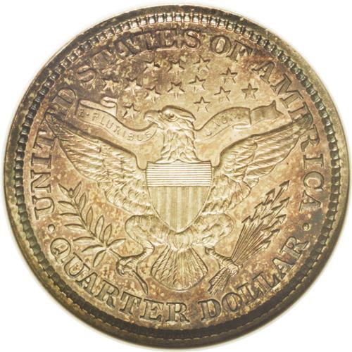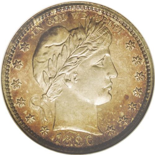 <B>1896<25C> PR67 Cameo NGC.</B></I> This is a remarkable Superb Gem with rich champagne and golden color over exceptional surfaces. Both sides have deeply mirrored fields and excellent contrast that remains visible beneath the toning. Both sides are sharply detailed. Census: 19 in 67, 4 finer (5/06).