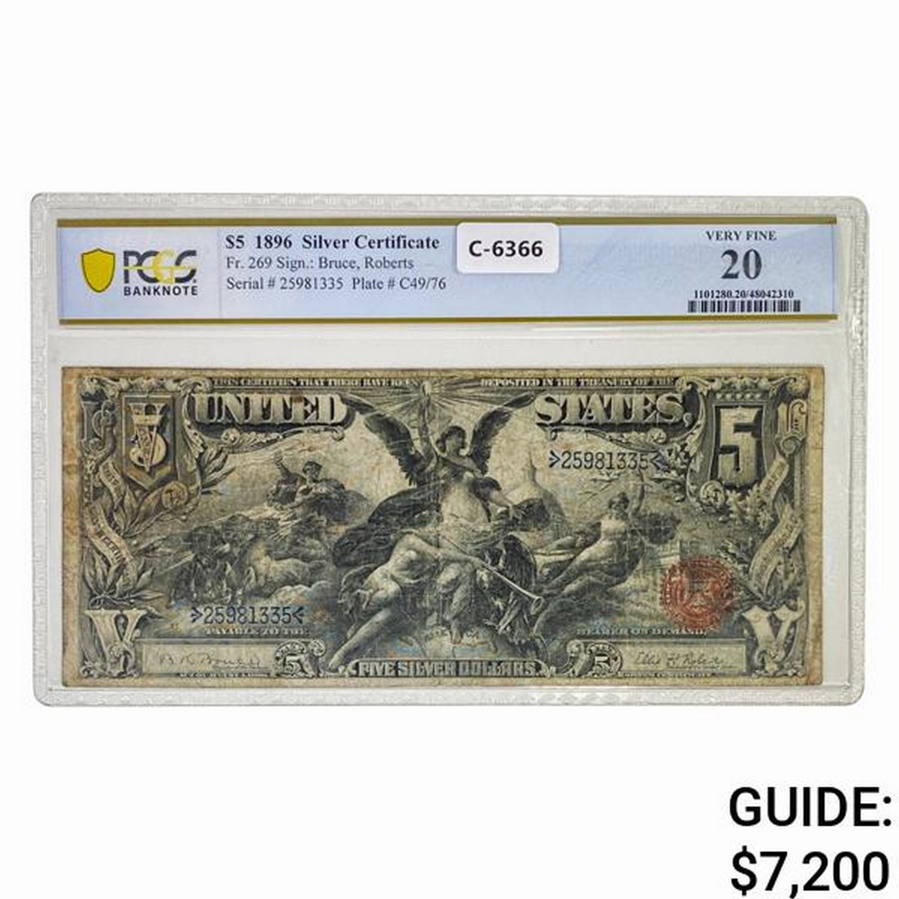 1896 $5 EDUCATIONAL SILVER CERT. PCGS VF-20