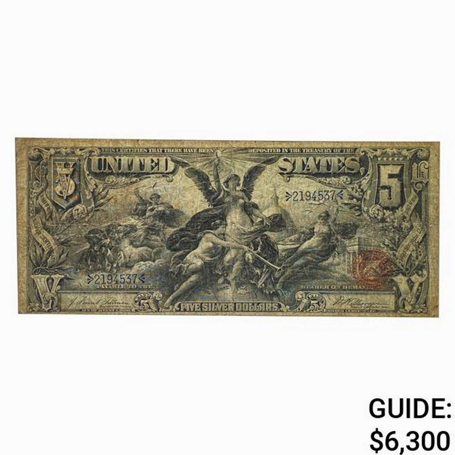 1896 $5 EDUCATIONAL SILVER CERTIFICATE VF