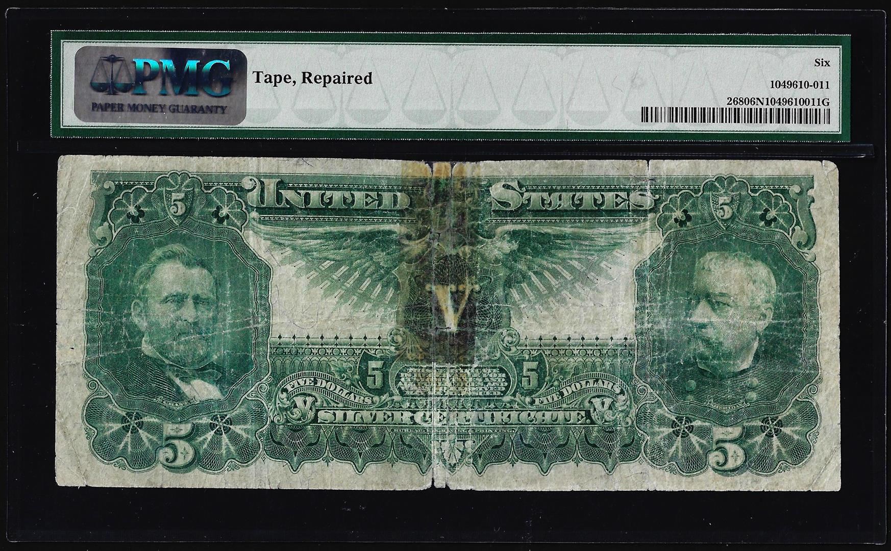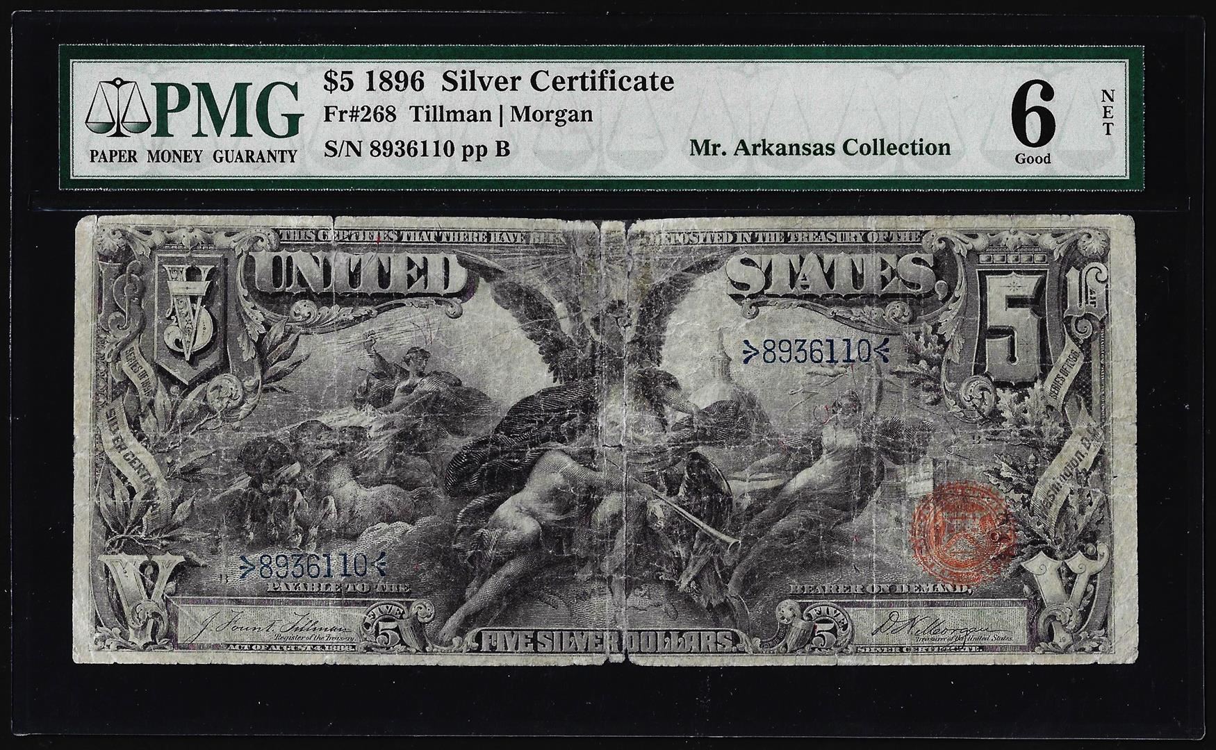 One 1896 $5 Educational Silver Certificate Note Fr.268 PMG Good 6 Net. PMG Certified.