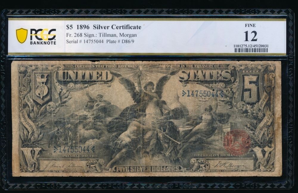 One 1896 $5 Educational Silver Certificate PCGS 12.