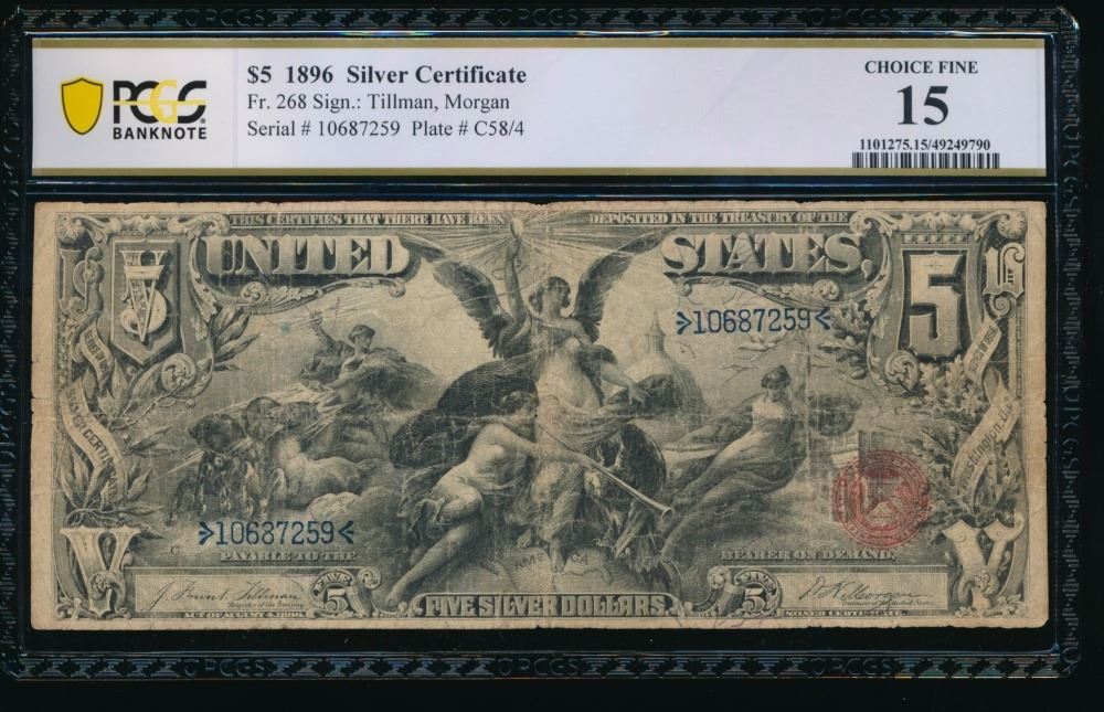 One 1896 $5 Educational Silver Certificate PCGS 15.