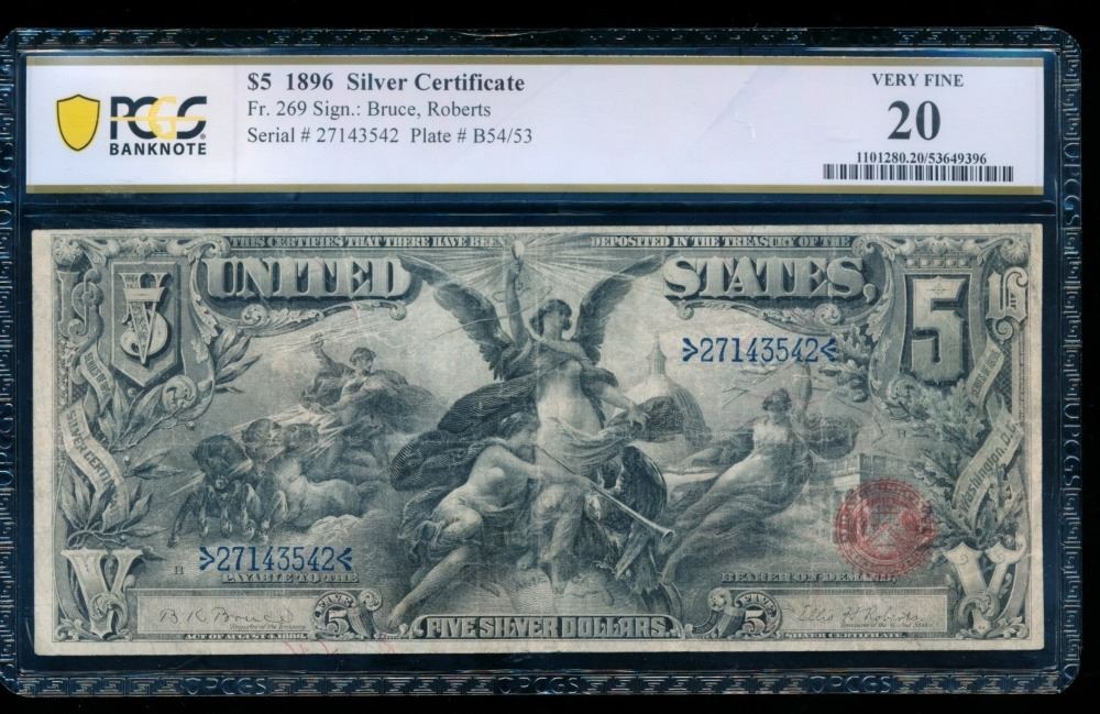 One 1896 $5 Educational Silver Certificate PCGS 20.