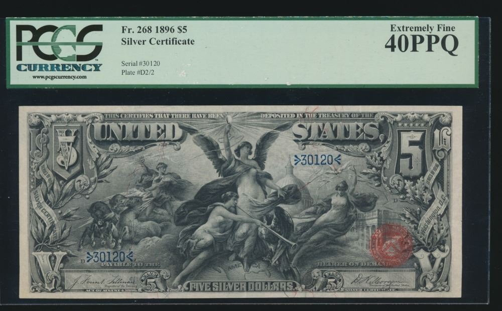 One 1896 $5 Educational Silver Certificate PCGS 40PPQ.
