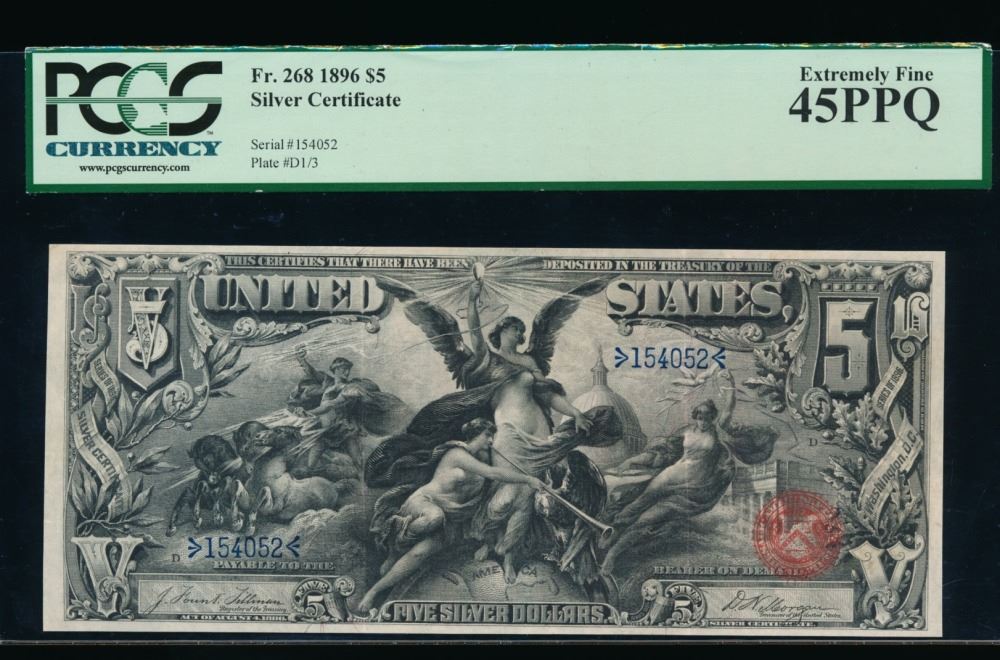 One 1896 $5 Educational Silver Certificate PCGS 45PPQ.