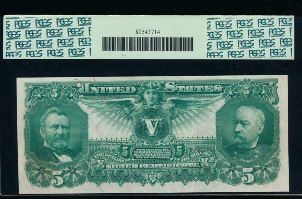 One 1896 $5 Educational Silver Certificate PCGS 45PPQ.