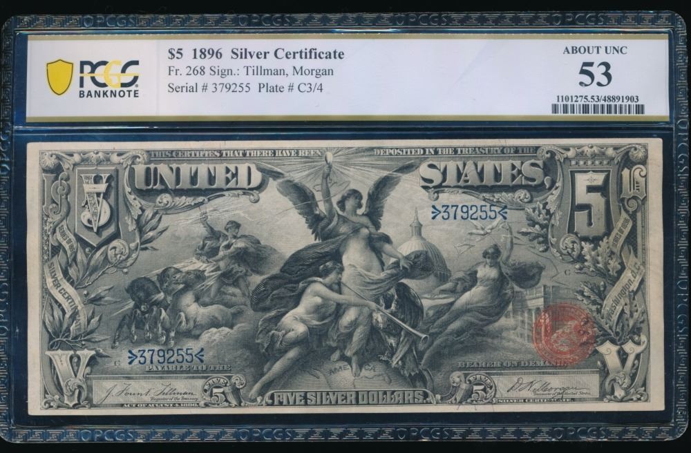 One 1896 $5 Educational Silver Certificate PCGS 53.