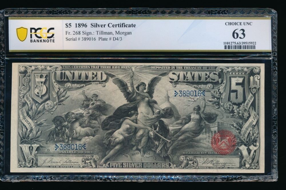 One 1896 $5 Educational Silver Certificate PCGS 63.