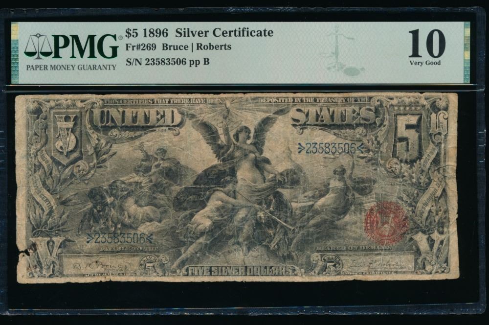 One 1896 $5 Educational Silver Certificate PMG 10.