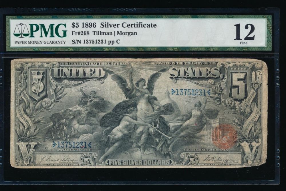One 1896 $5 Educational Silver Certificate PMG 12.
