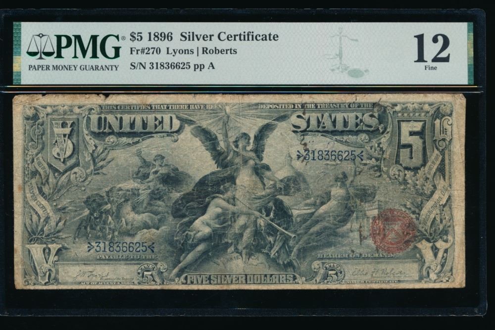 One 1896 $5 Educational Silver Certificate PMG 12.