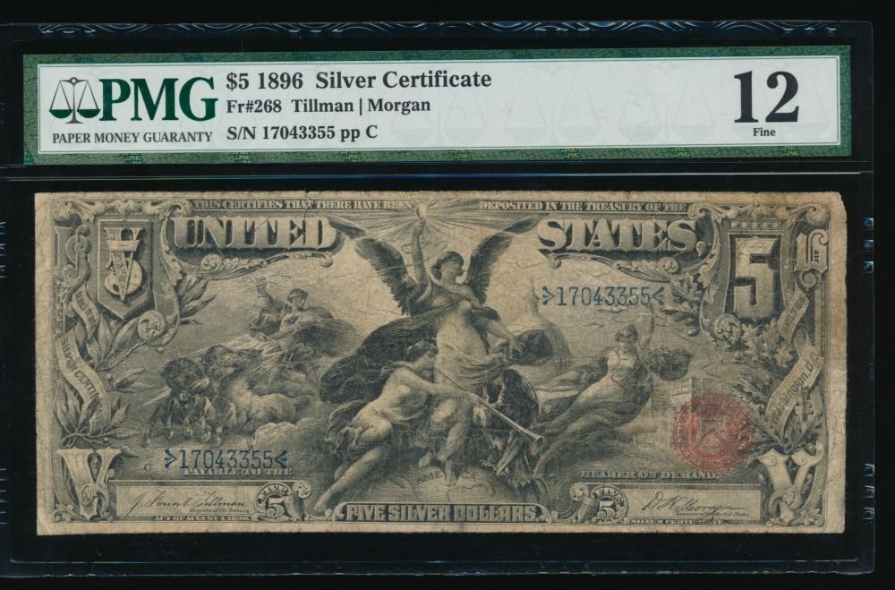 One 1896 $5 Educational Silver Certificate PMG 12.
