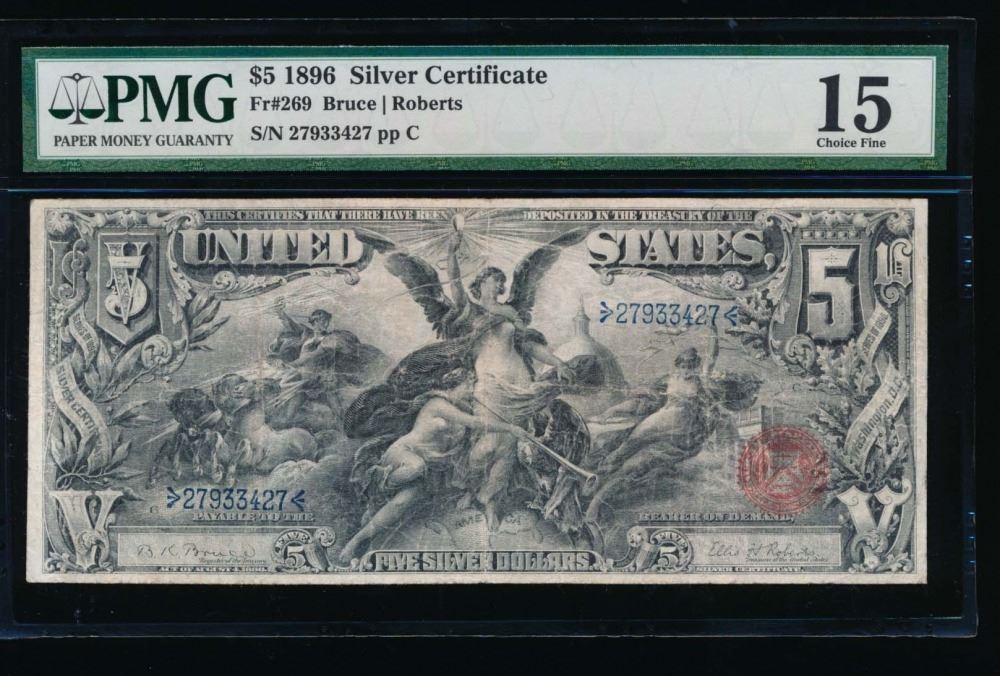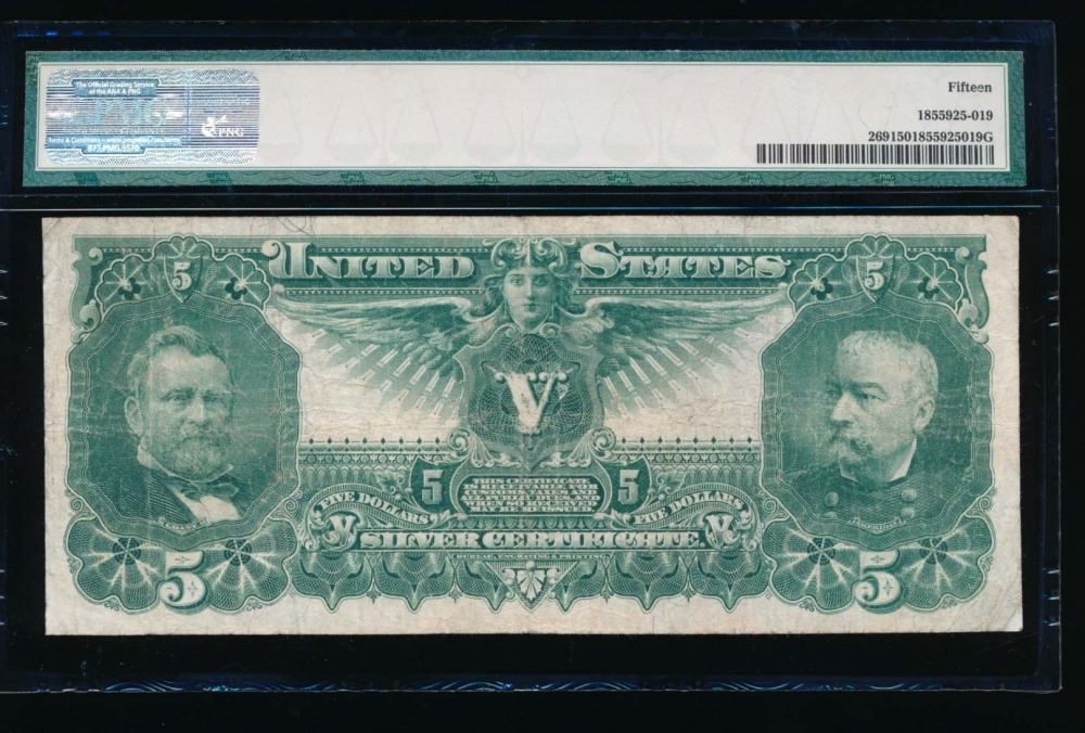 One 1896 $5 Educational Silver Certificate PMG 15.
